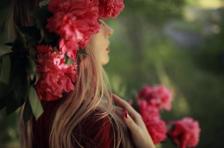 Фото милых красивых женщин с цветами в волосах.
