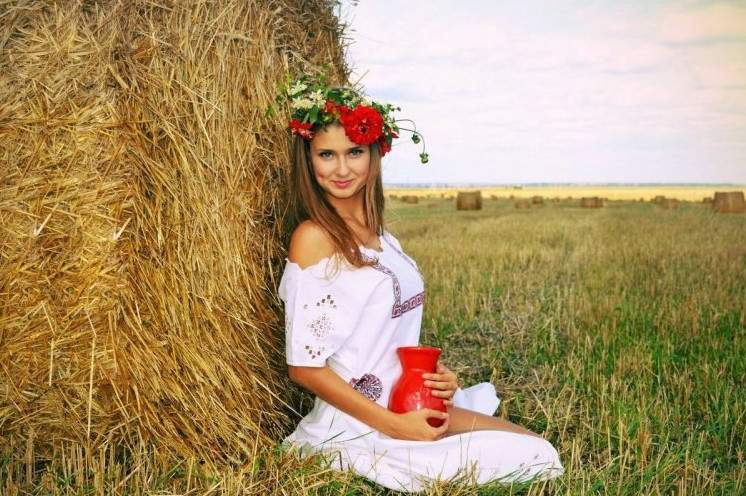 Украинка пляшет в поле.