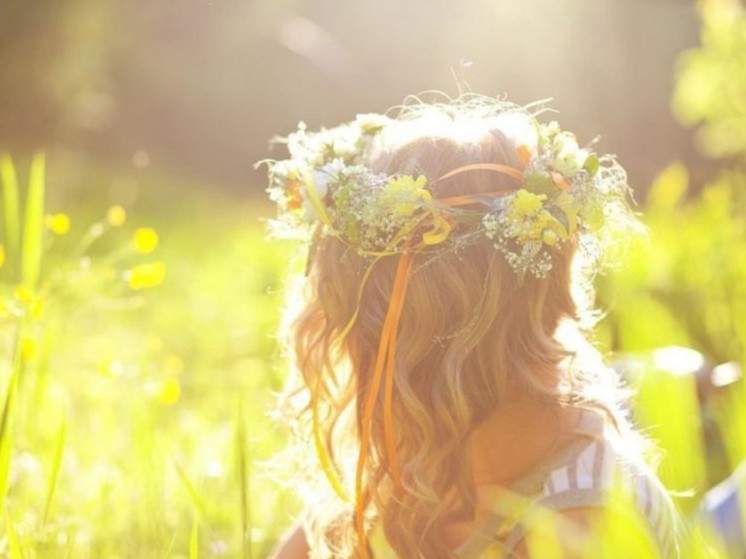 Красивая девушка спиной в веночке.