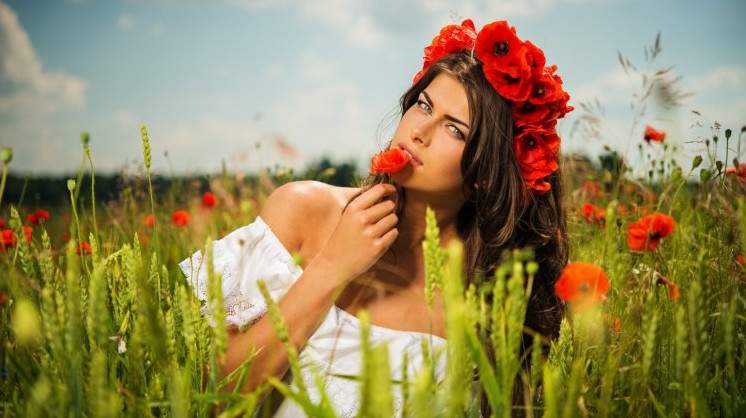 Эротика с брюнеткой в маках.