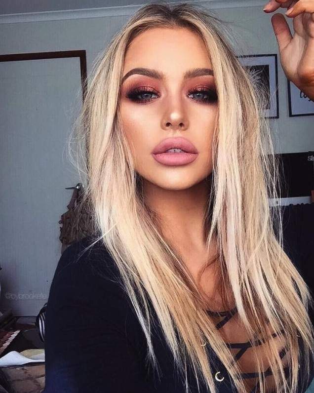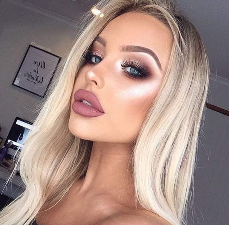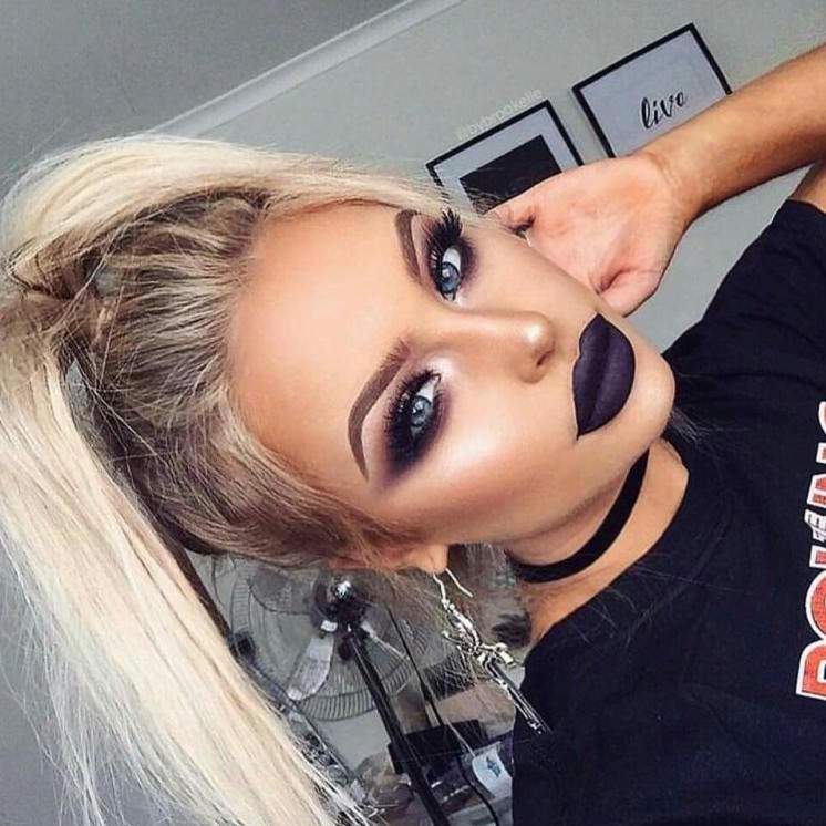 Мейкап с темными губами для блондинок.