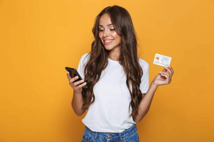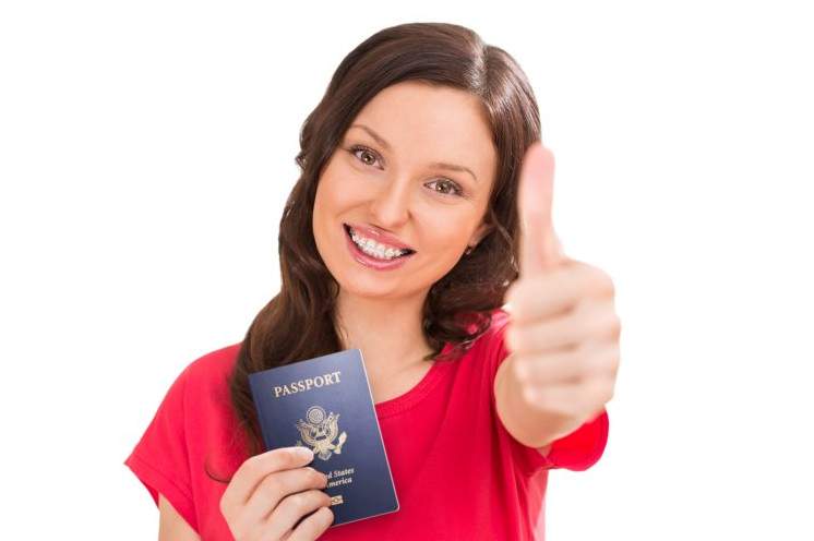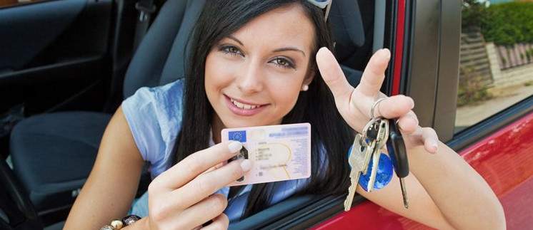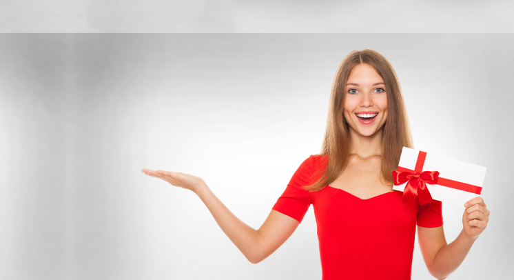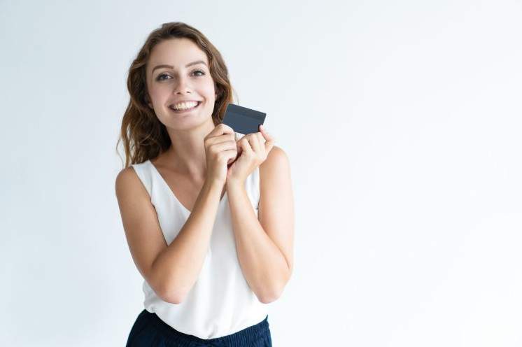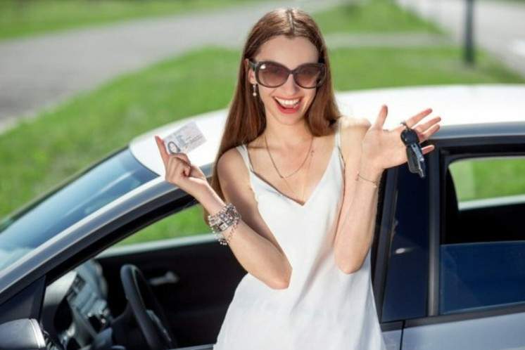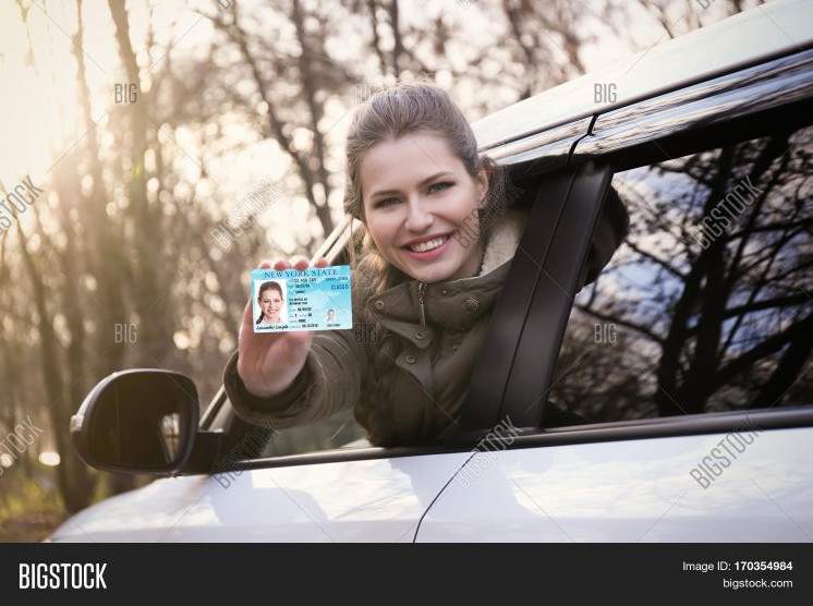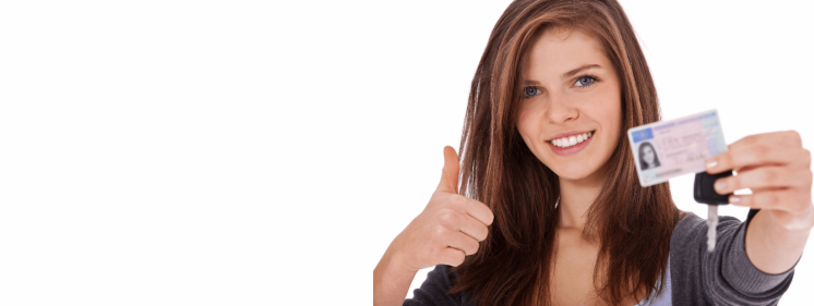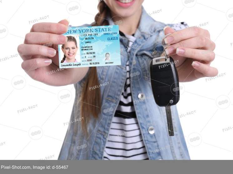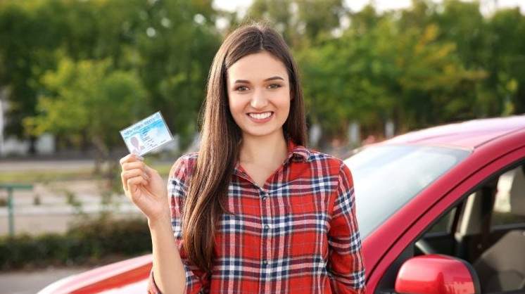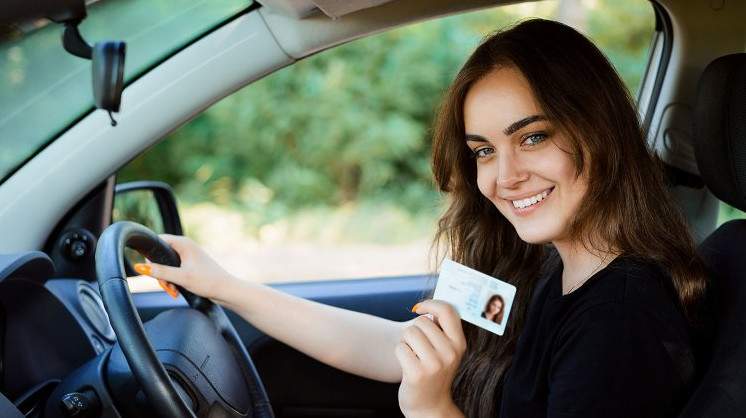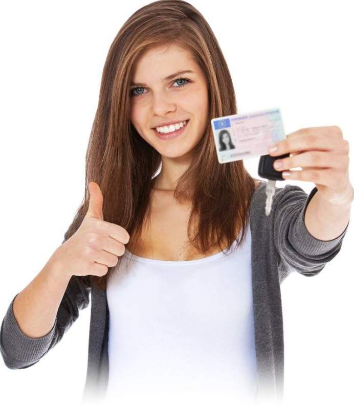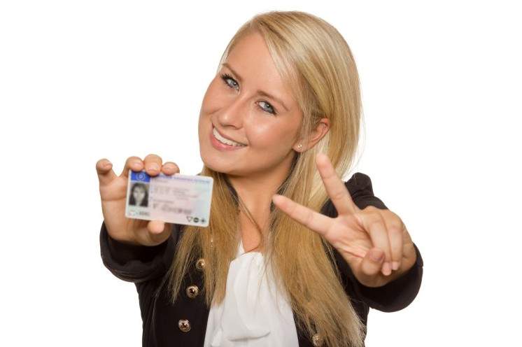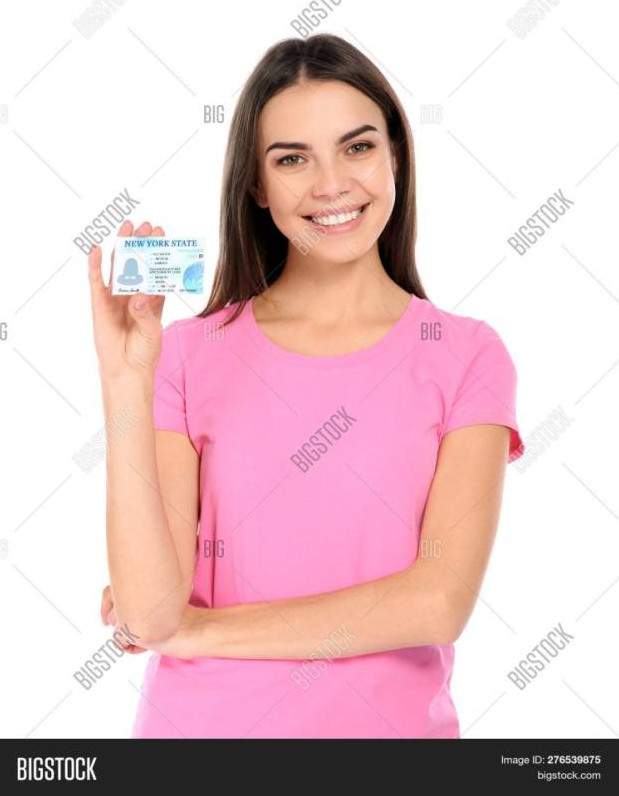 Красивая девушка с удостоверением в руках на прозрачном фоне.