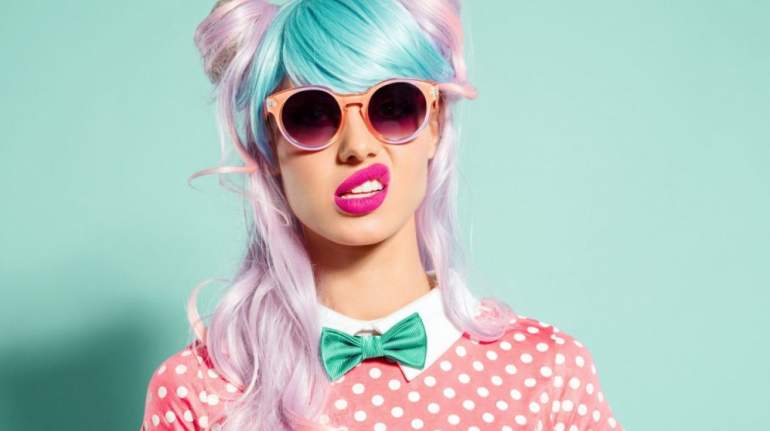 Девушка красавица в розовом парике.