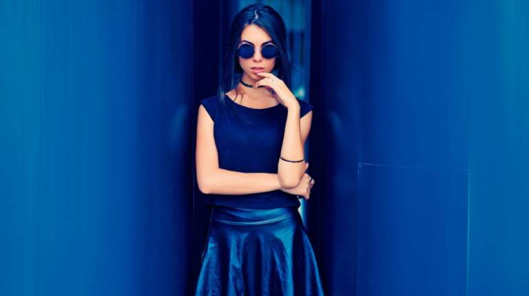 Девушка красавица в броской одежде.