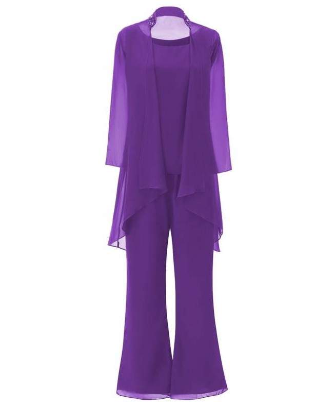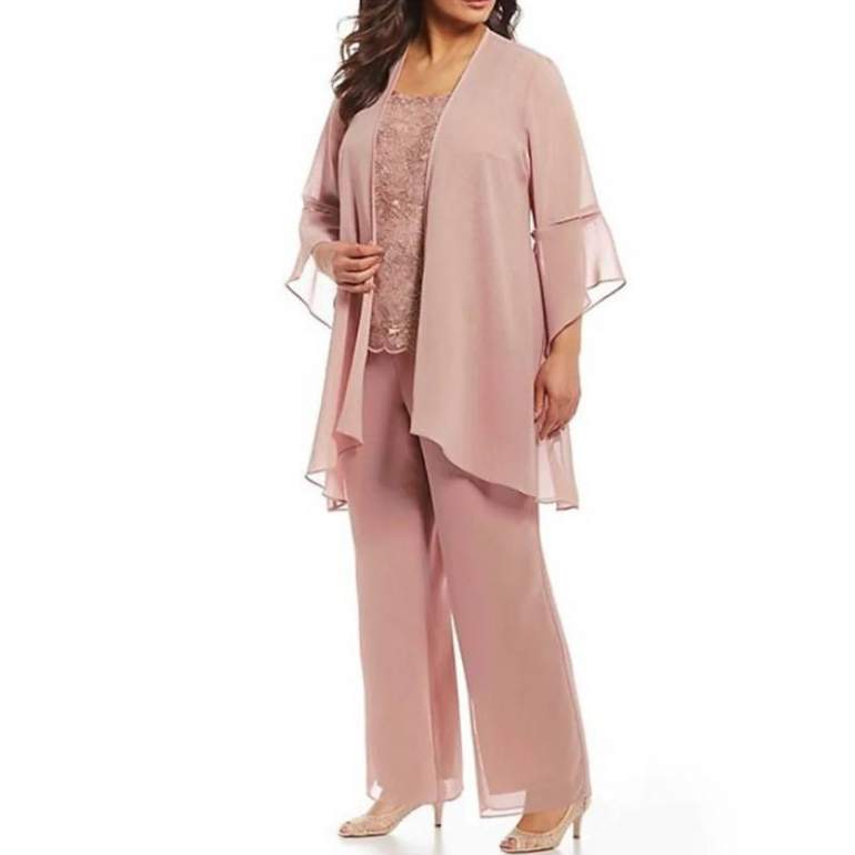 Womens 3-pieces Set mother of Bride Dress outfits Pant Suits Bussiness Elegant Formal Chiffon Plus Size for Formal Wedding.
