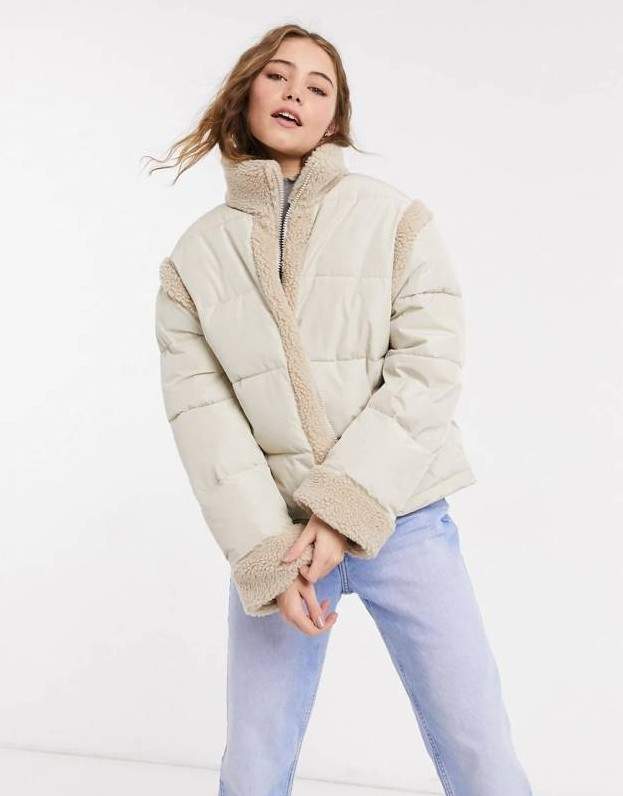 Стеганый пуховик кремового цвета Urbancode Tall.
