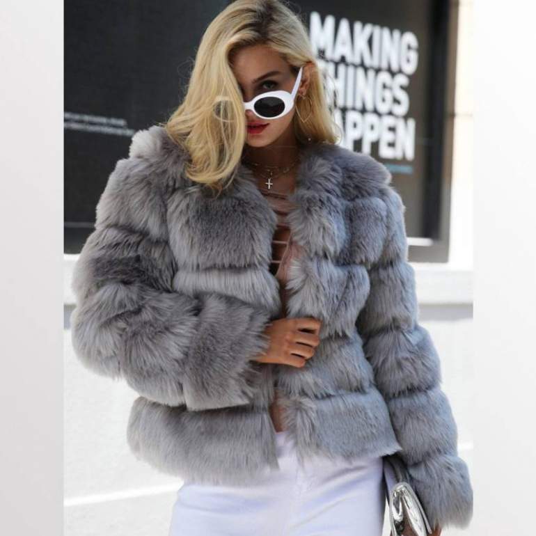 Короткое пальто из искусственного меха 2019.