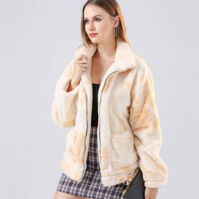 Меховая куртка женская из искусственного меха.
