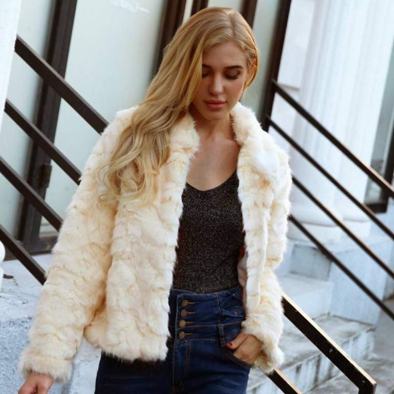 Маленькая куртка с белоснежным мехом.