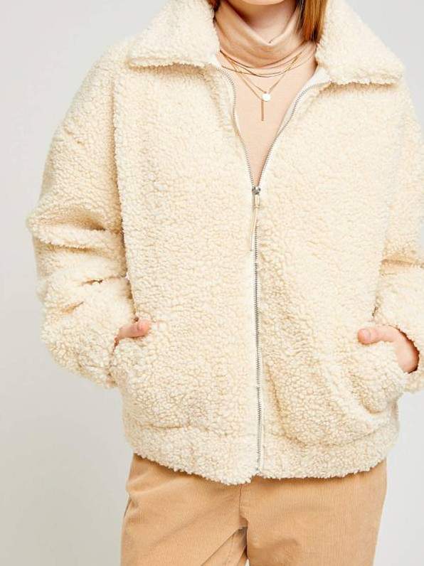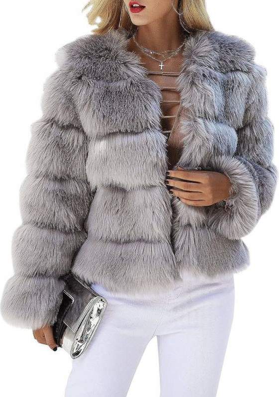 Плюшевая куртка женская сероватая.