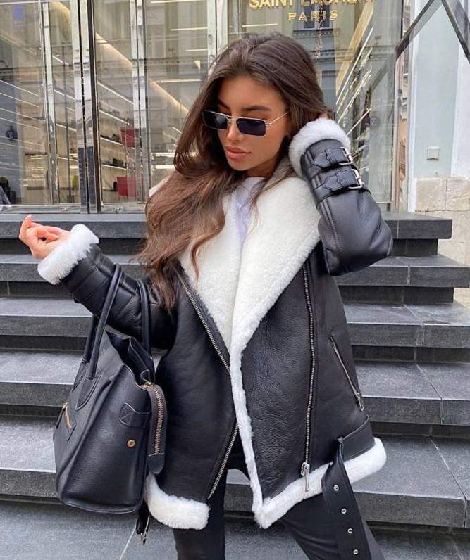 Куртка пилот с овечьей шерсти женская.