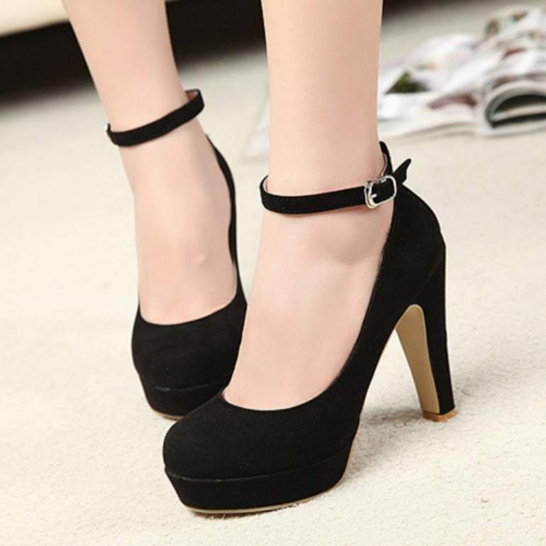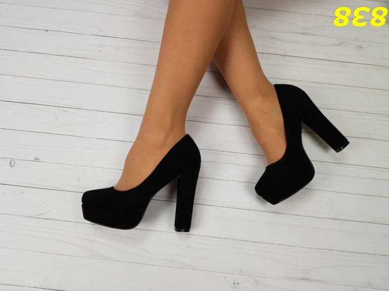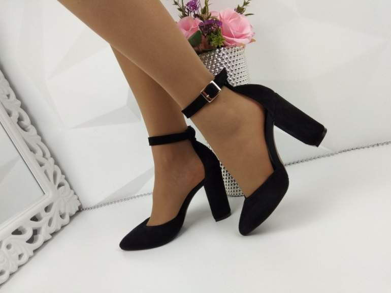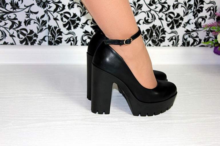 Чёрные туфли на толстом каблуке.