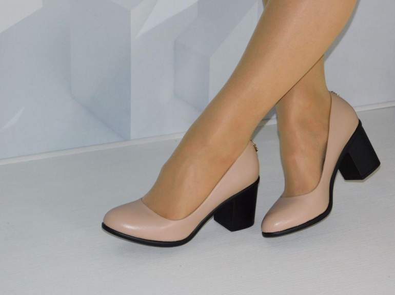 Бежевые туфли на устойчивом каблуке.