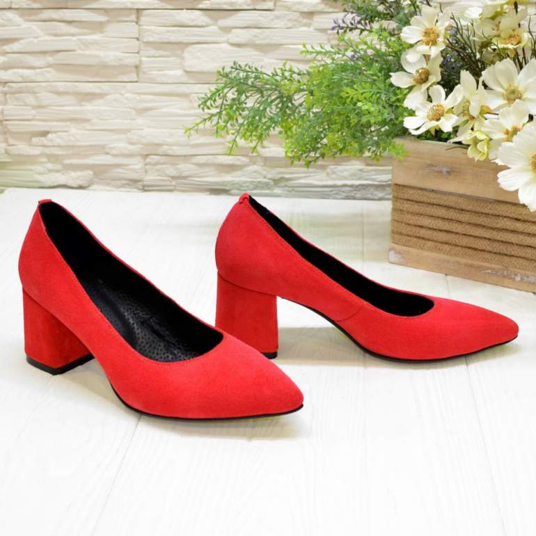 Очень красные туфли на каблуке.