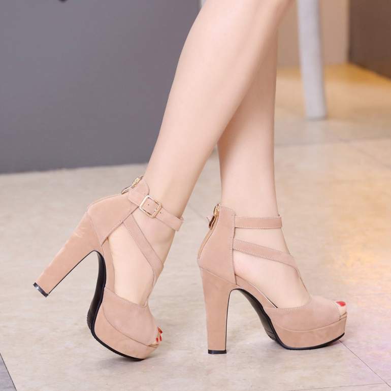 Бежевые туфли на каблуке.
