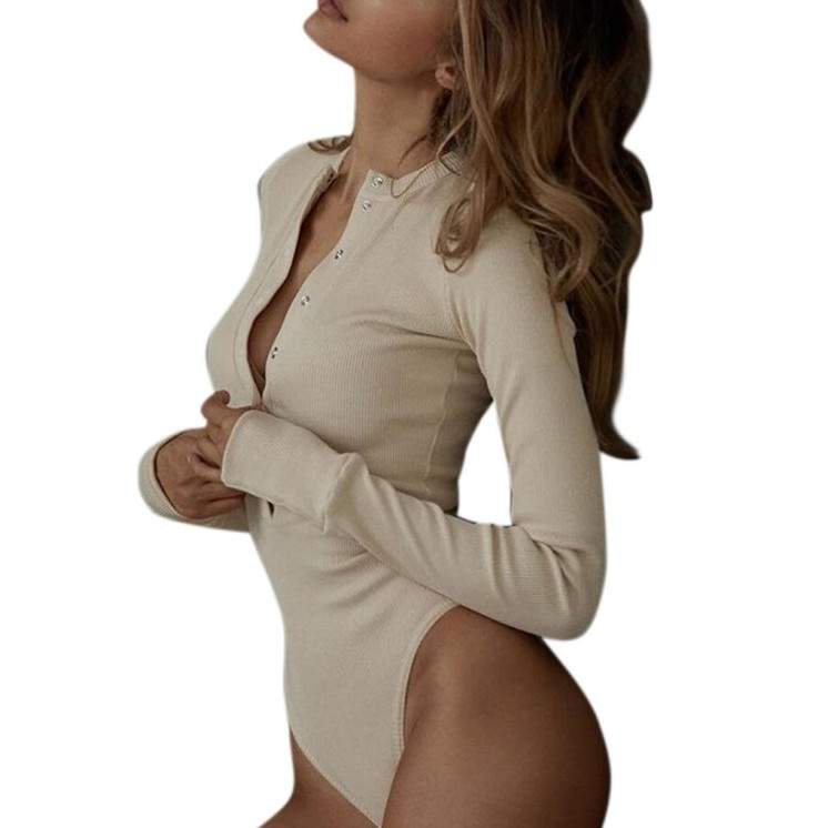 Бежевое боди с длинным рукавом.