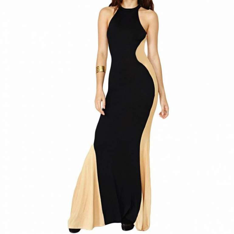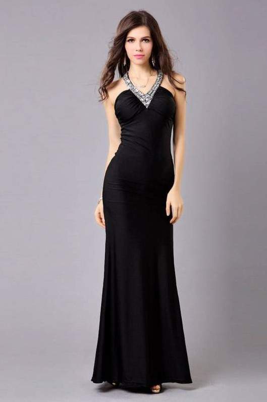 Темное платье макси халтер.