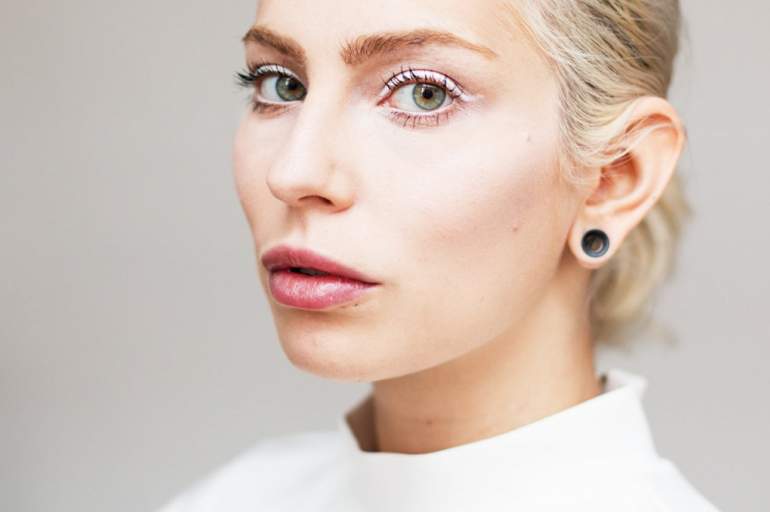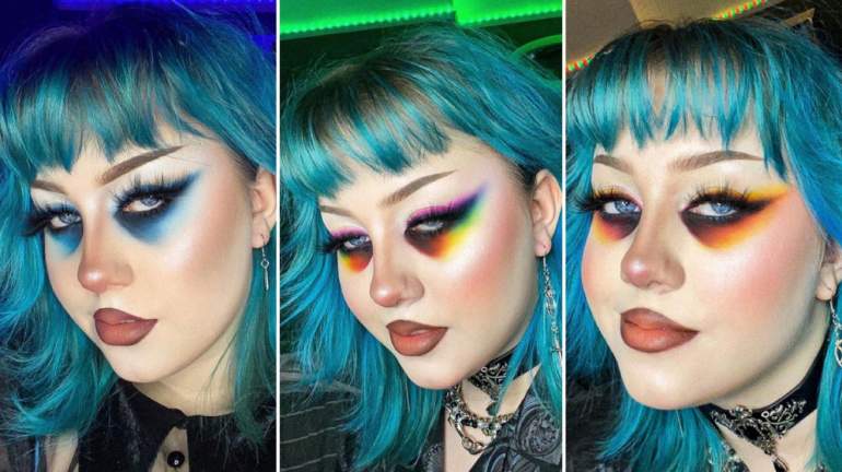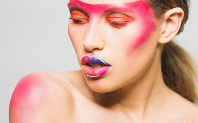 Лицо девушки с броским макияжем.