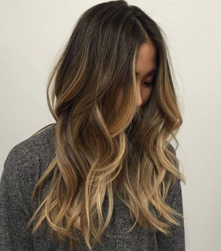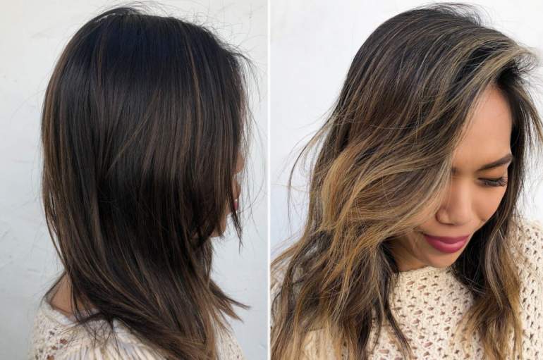 Мелирование эффект выгоревших волос на черные волосы.