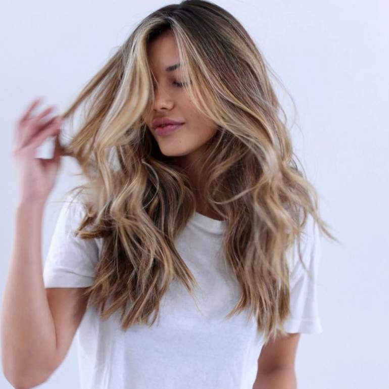 Хайлайтс балаяж на русые.