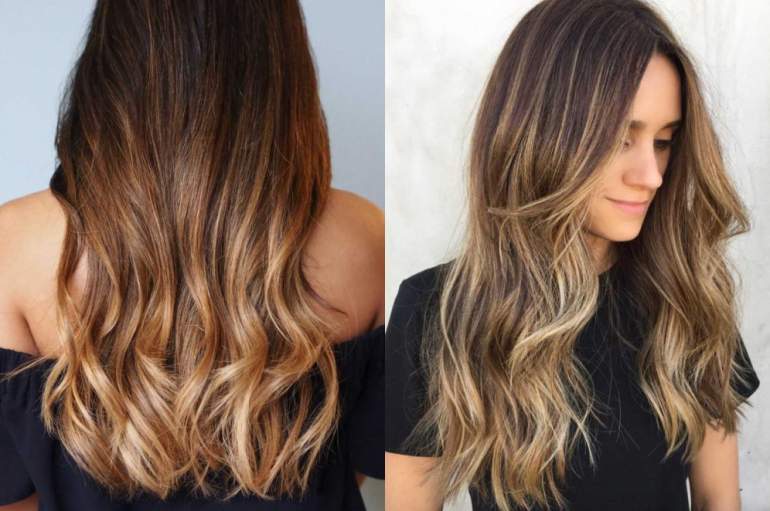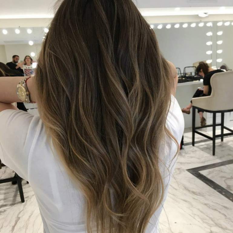 Шатуш на каштановые волосы.