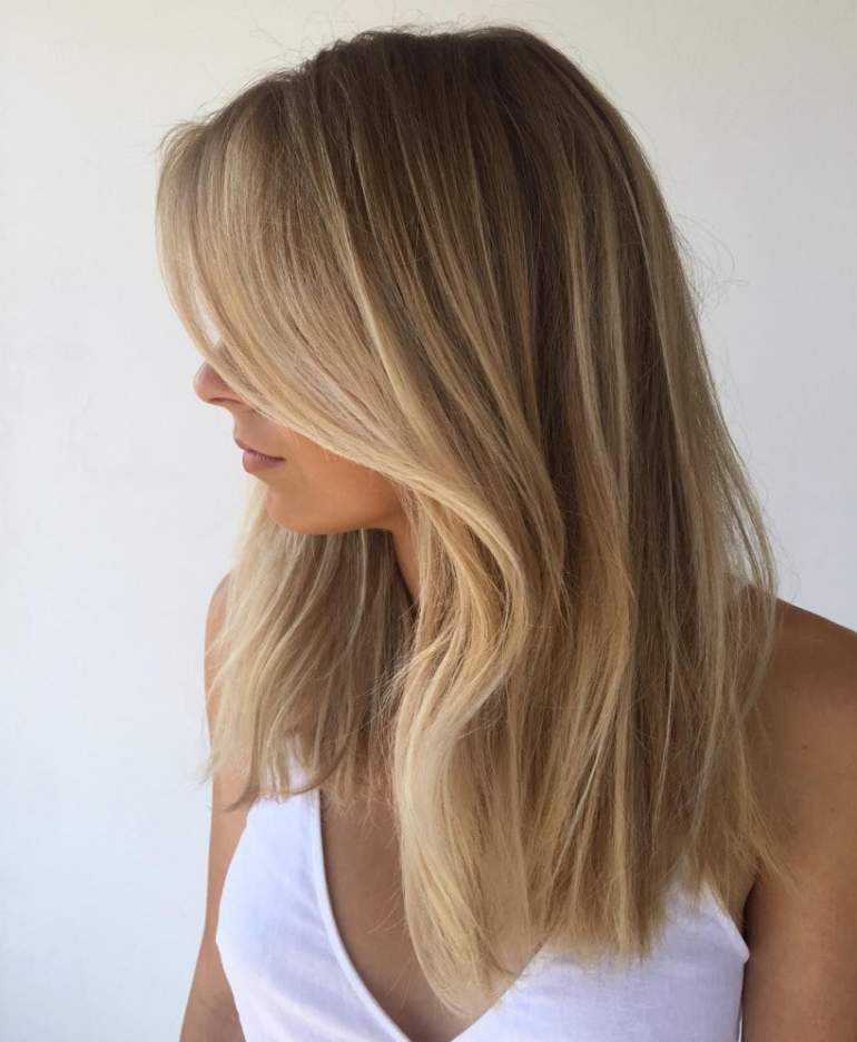 Окраска русых прямых волос.