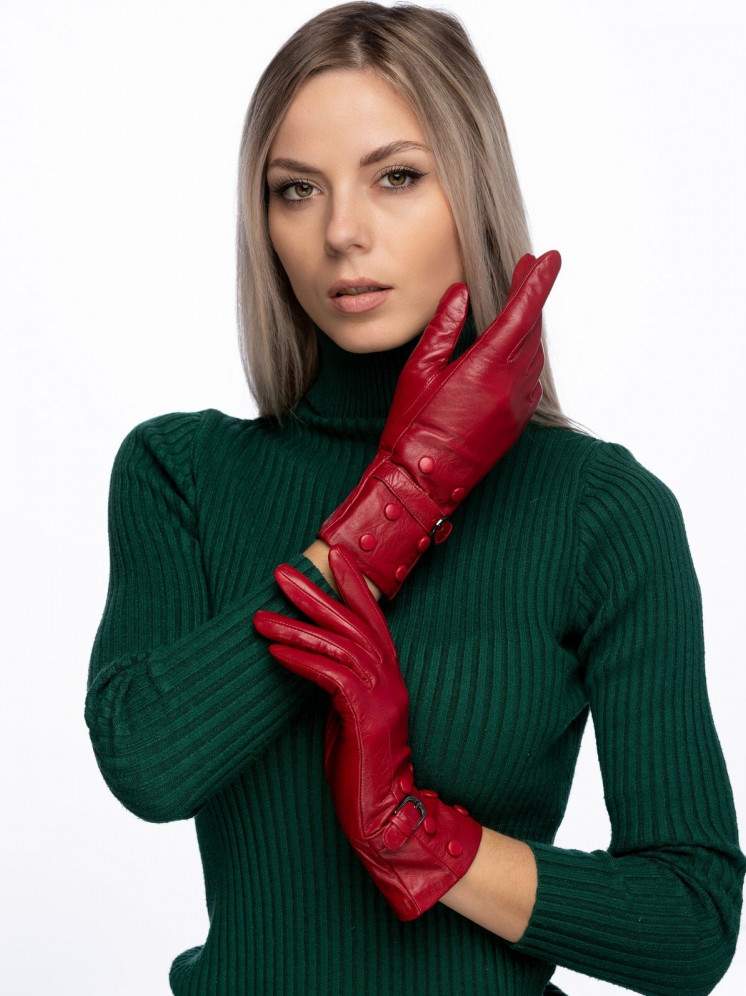 Очень красные кожаные перчатки дамские.