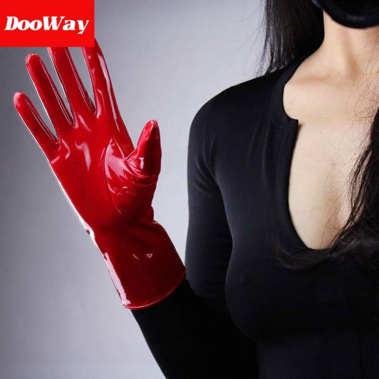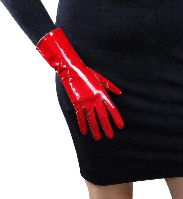 Очень красные лаковые перчатки.