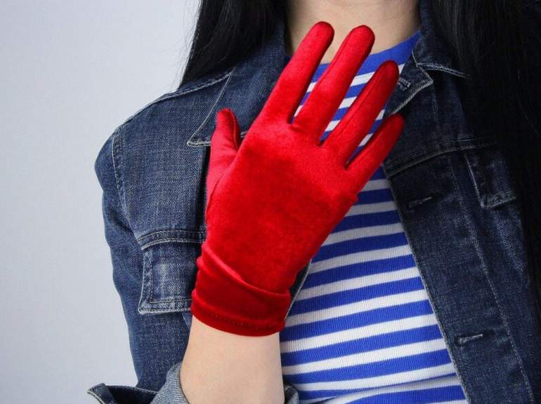 Очень красные бархатные перчатки.