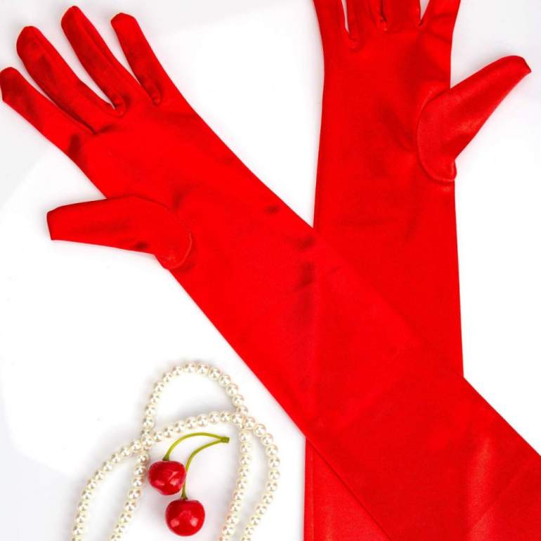 Перчатки атласные очень красные.
