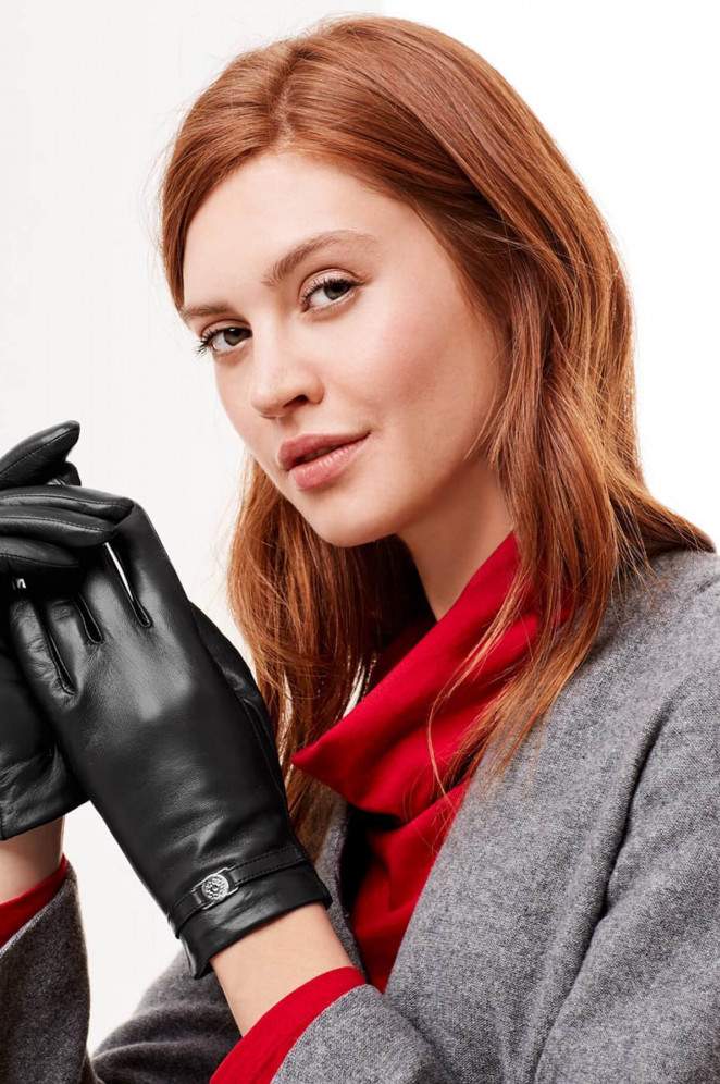Юлия Снигирь в кожаных перчатках.