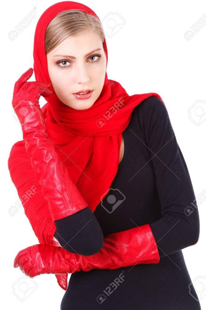 Очень красные перчатки дамские.