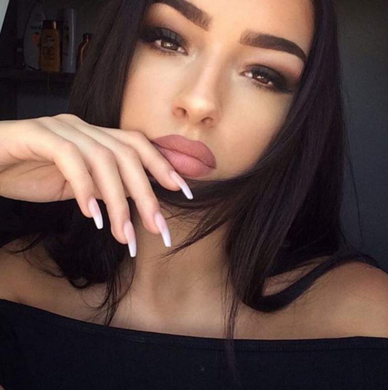 Губастая брюнетка.