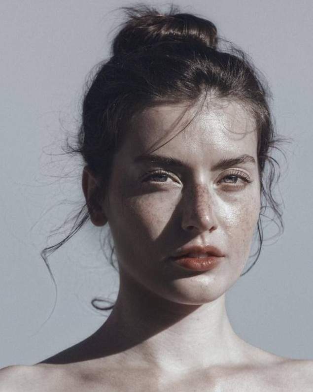 Смуглая девушка с веснушками.