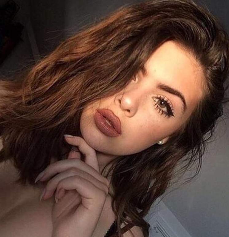 Девушка с каштановыми волосами селфи.