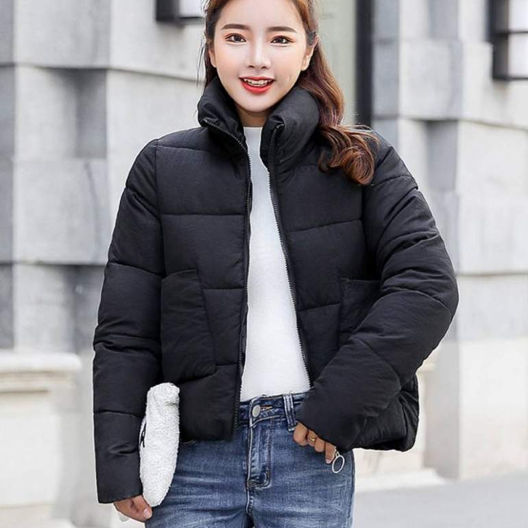 Чёрная куртка женская зимняя маленькая.