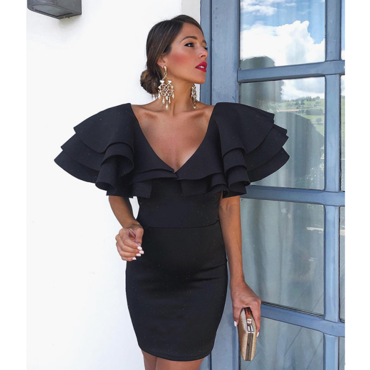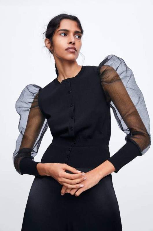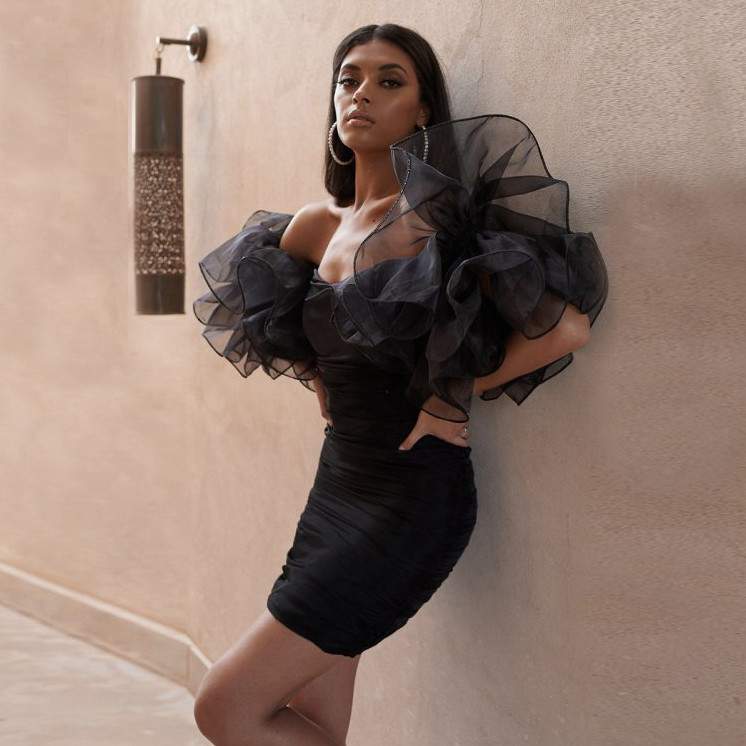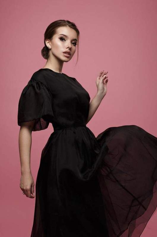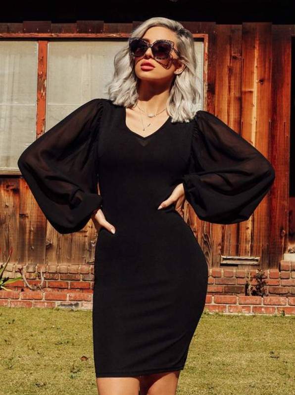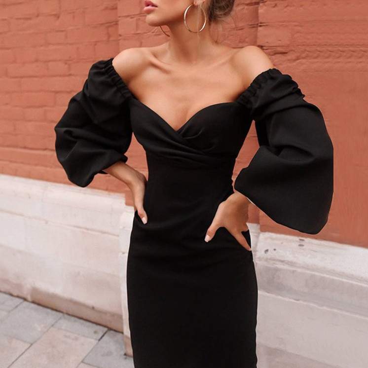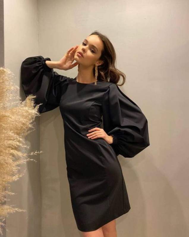 Шейн чёрное прекрасное платье с рукавами фонариками.