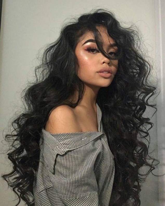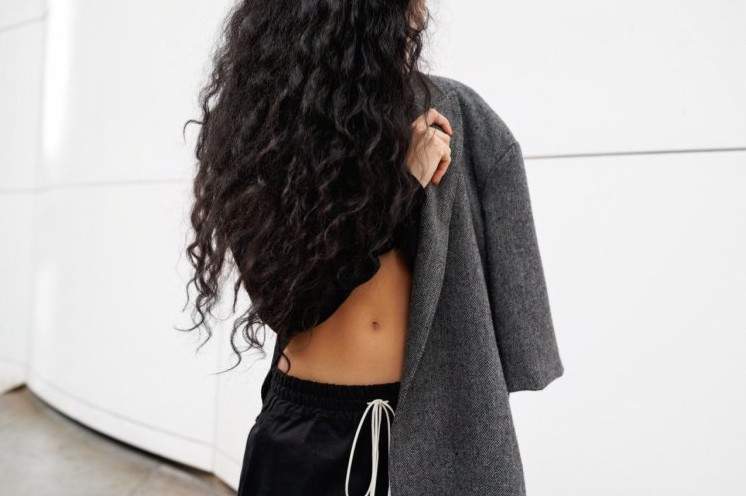 Девушка с очень длинными темными волосами.