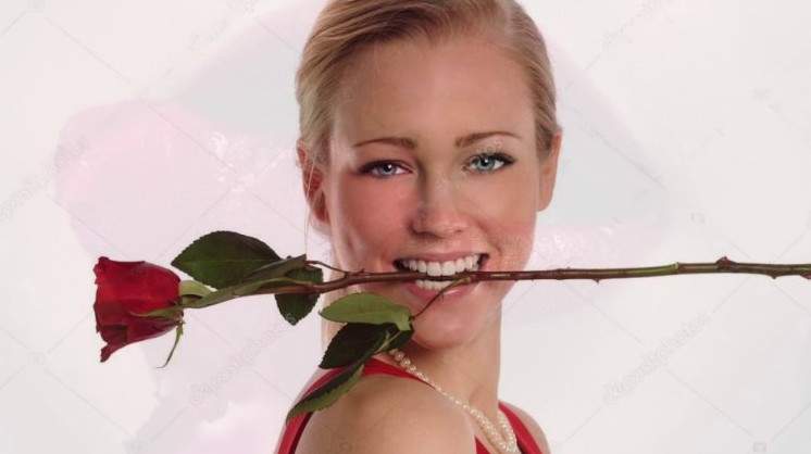 Девушка с розой во рту.