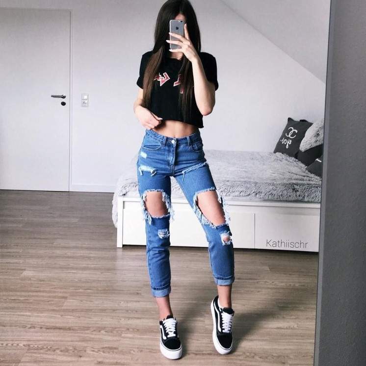 Рваные джинсы для девочек.