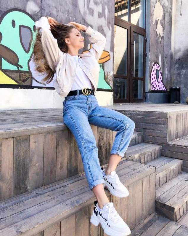 Стильная девушка в джинсах.