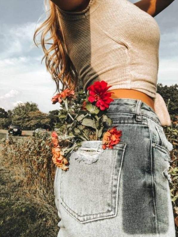 Фотосессия с цветами в джинсах.
