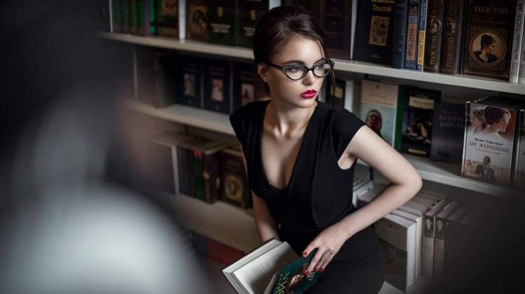 Эротика с брюнеткой в Вечернем прекрасное платье.