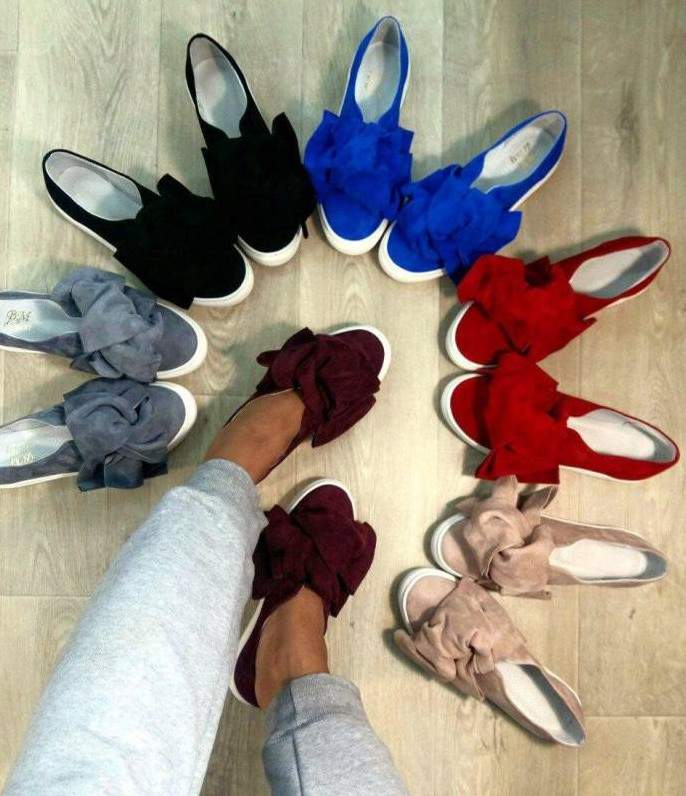 Слипоны с огромным бантом.