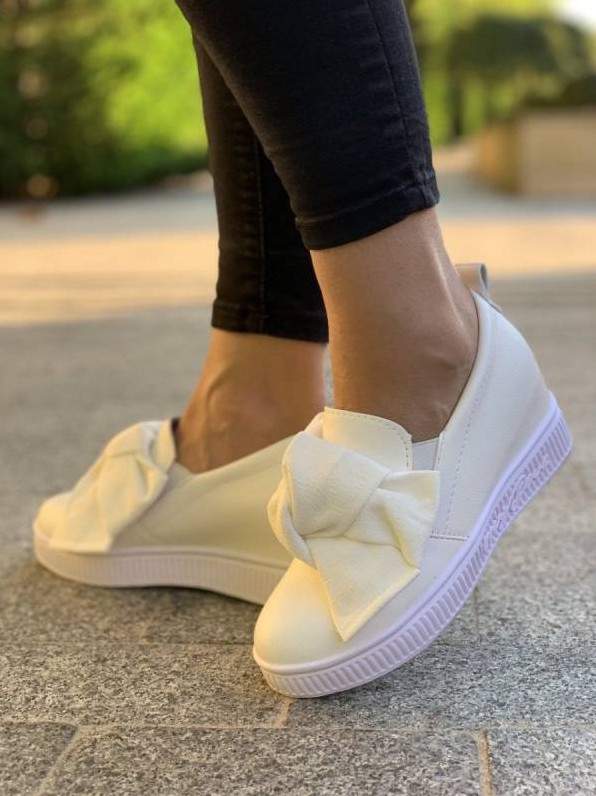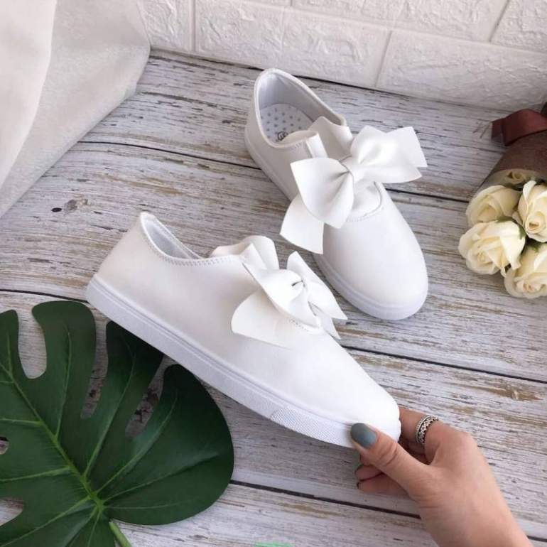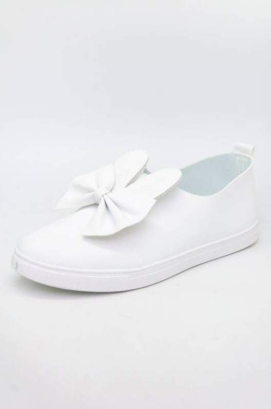 Слипоны белоснежные с бантом.