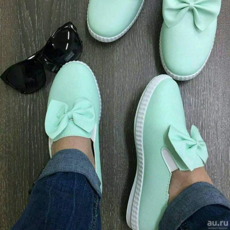 Слипоны мятные с бантом.