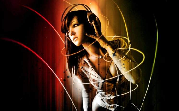Красивая девушка в наушниках.