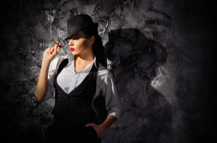 Прелестная красивая женщина с сигарой в шапке.