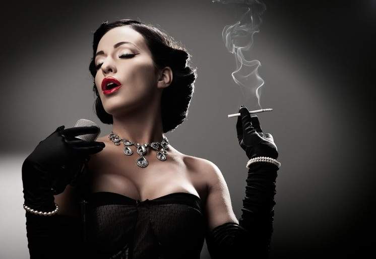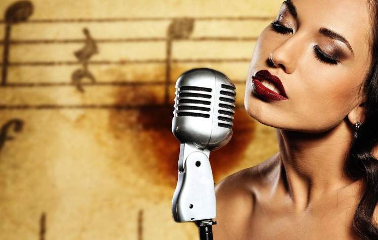 Блондиночка поет.