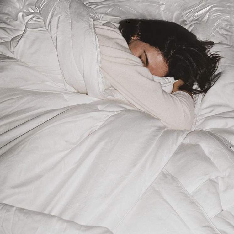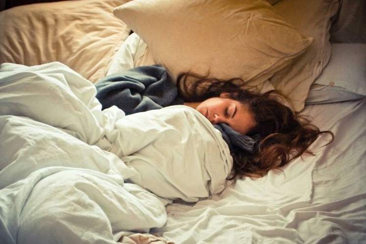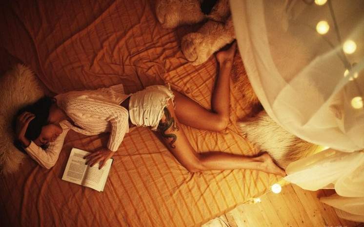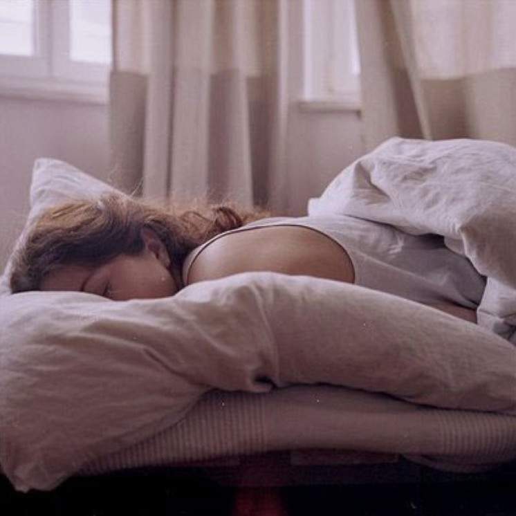 Девушка дремлет в кровати.